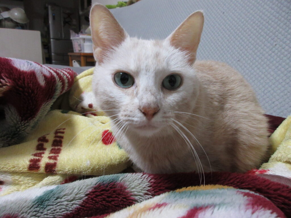 カギです。チャチャにひざ枕、足がしびれてきているんだけど・・・